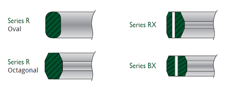 A solid metal gasket that is softer than the mating flange material that is virtually ‘crushed’ into the flange face, creating a seal by filling imperfections and leak paths with gasket material. Under high sealing stress the gasket deforms but not the flange. They are used predominantly in the petrochemical industry (offshore oil platforms, refineries) due to the high service pressures required in their processes. Ring joint gaskets are machined to exact specifications and tight tolerances and come in a number of styles.